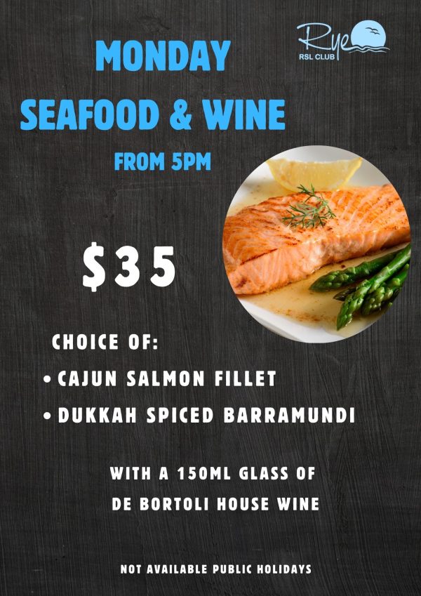 MONDAY SEAFOOD & WINE FROM 5PM